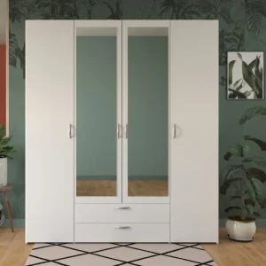 DAILY armoire 4 portes, 2 tiroirs avec Miroir – Blanche